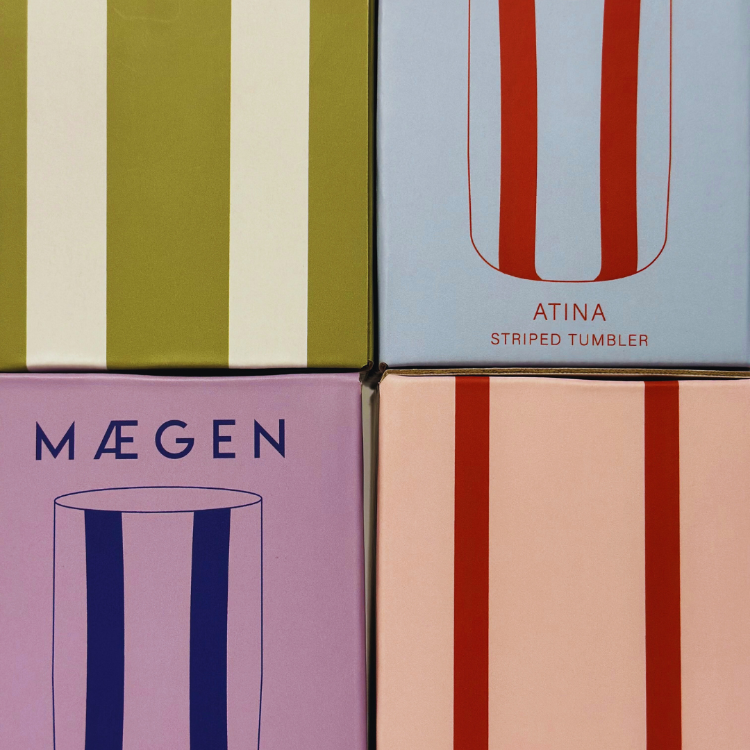 De Atina glazen van Maegen zijn gemaakt voor wie kleur durft te omarmen. Met hun speelse strepen en levendige tinten brengen ze instant energie aan tafel — perfect voor lange zomeravonden, feestelijke diners of gewoon een vrolijk dagelijks moment.