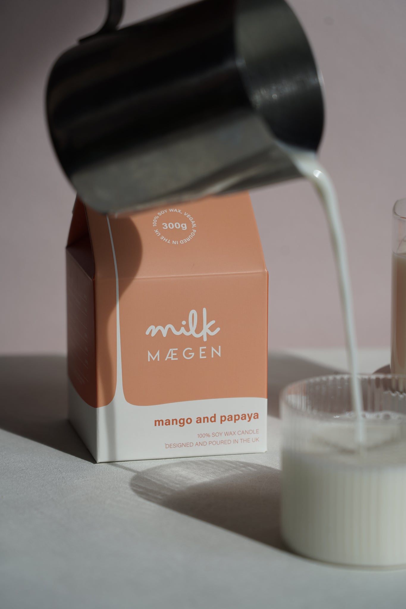 De Milk Geurkaars van MÆGEN omarmt een minimalistisch design dat doet denken aan het vertrouwde silhouet van een klassiek melkflesje. Het heldere, hittebestendige glas met subtiele maatverdeling voelt rustig en tijdloos aan — moeiteloos passend in elk interieur.