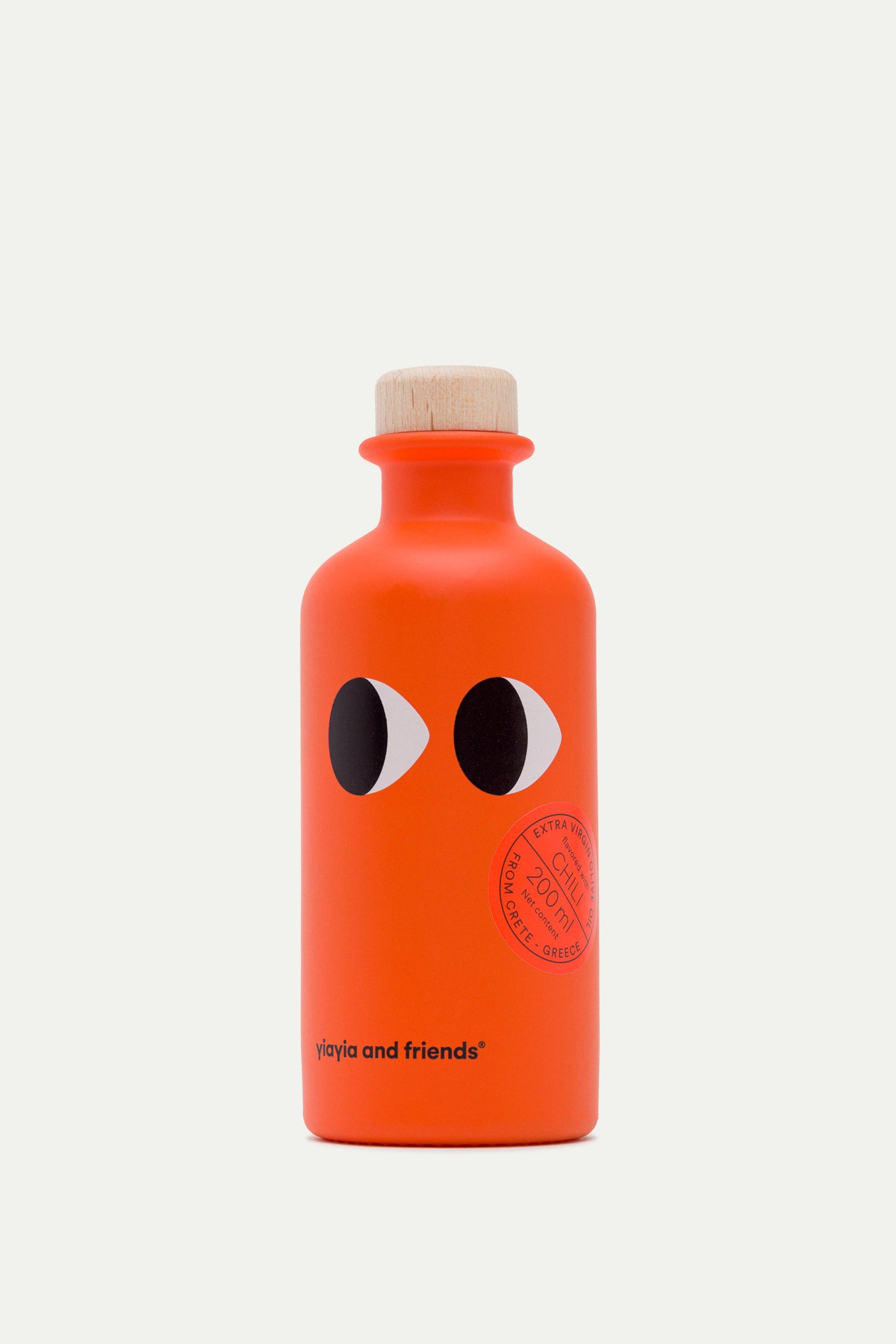 Een klassieker, maar dan met pit. Deze extra vierge olijfolie met chili van Yiayia and Friends combineert uitzonderlijke kwaliteit met een kruidige kick. Ze komt in een vrolijke oranje fles, afgewerkt met de herkenbare illustratie met oogjes — speels, eigenzinnig en perfect om op tafel te zetten.