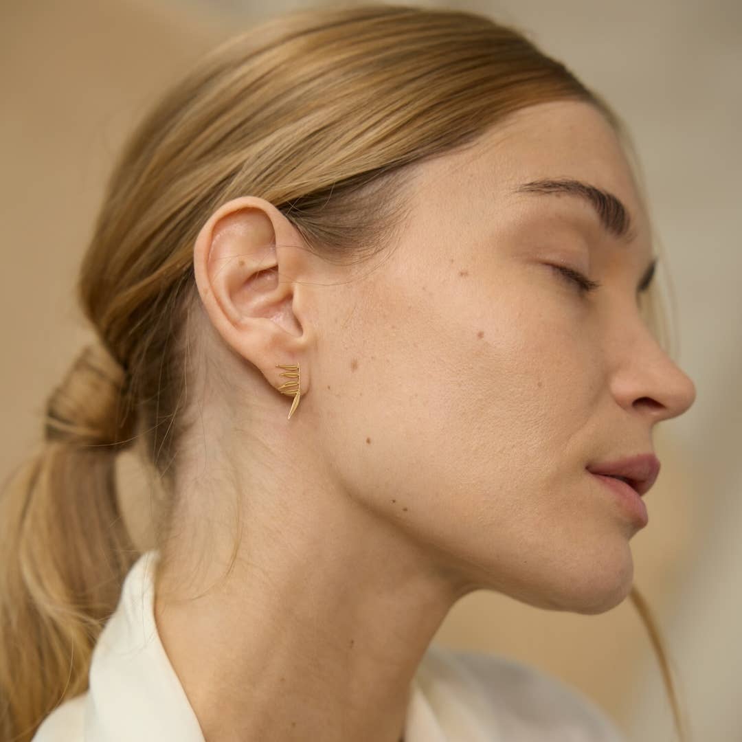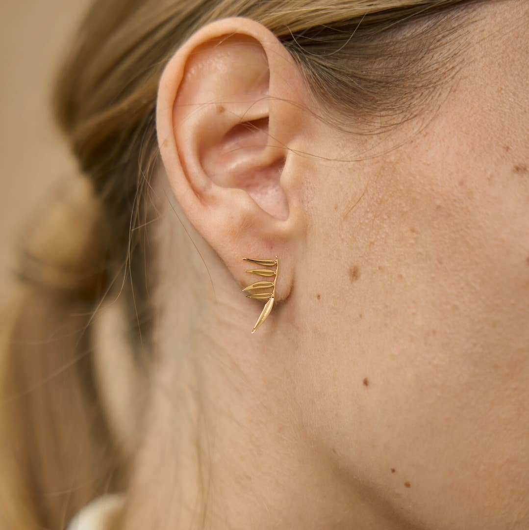 Deze fijne oorstekers van Nadja Carlotti zijn subtiel en elegant, met een bladmotief dat geïnspireerd is op de delicate blaadjes van de Sorbaria Sorbifolia. Het ontwerp is licht, origineel en vrouwelijk – perfect om elke dag te dragen.