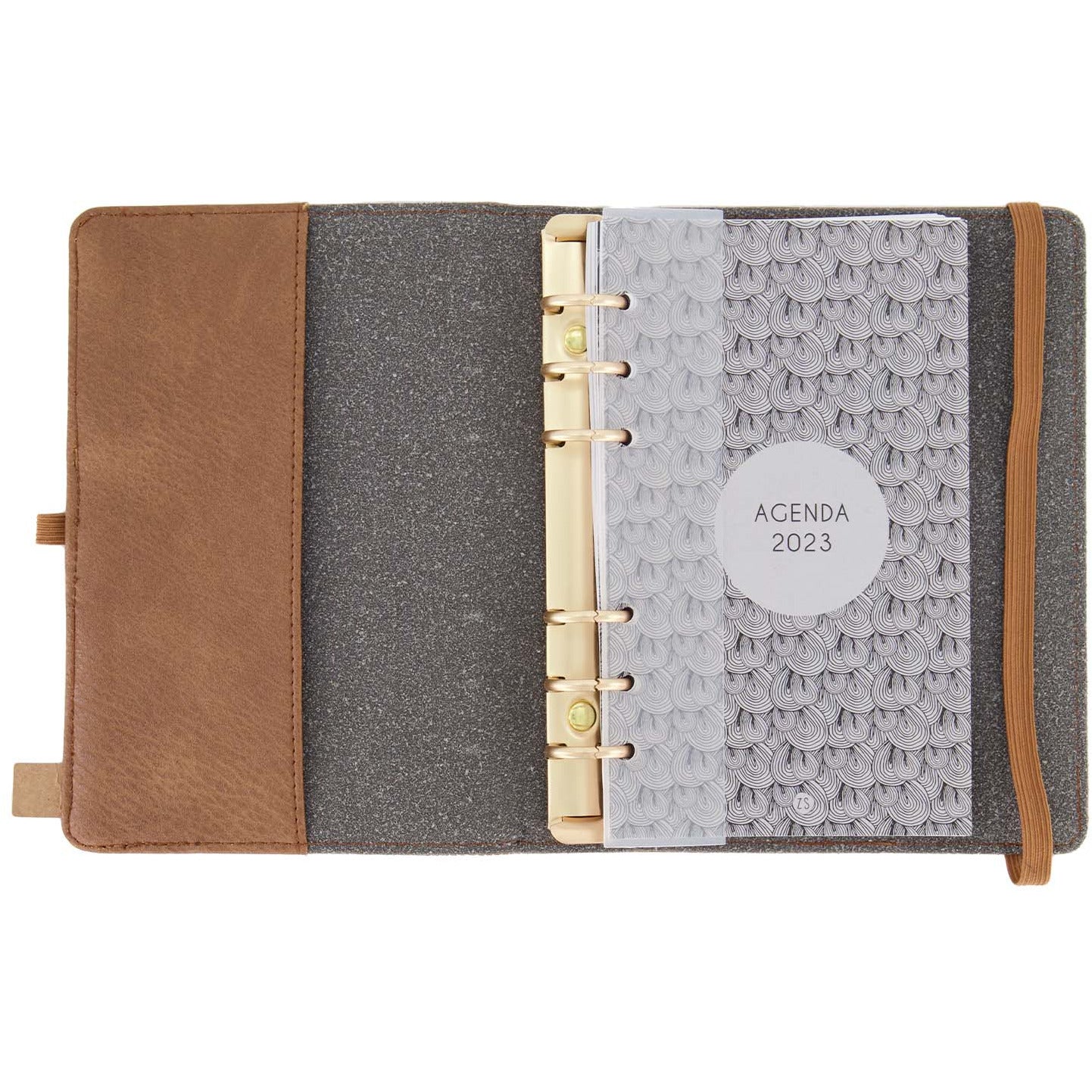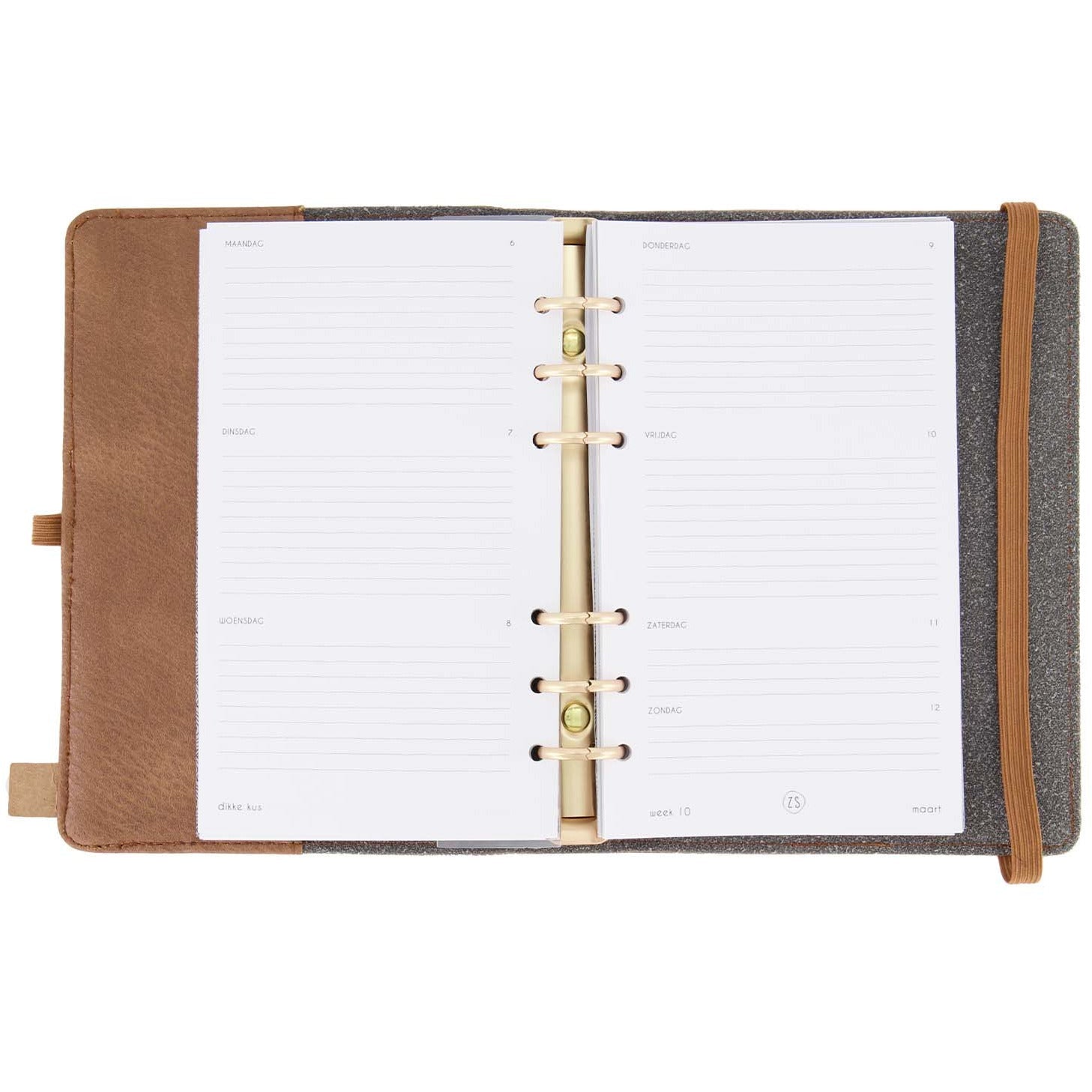 Aan de binnenkant vind je een apart vak voor losse papieren. Zo heb je ze snel bij de hand. De agenda is ook voorzien van een ringband, zodat je ieder jaar de vulling kan wisselen. Je kan er een potlood of ben in opbergen en sluit hem af met de elastische band. Plannen en afspraken maken wordt met deze agenda alleen maar fijner.