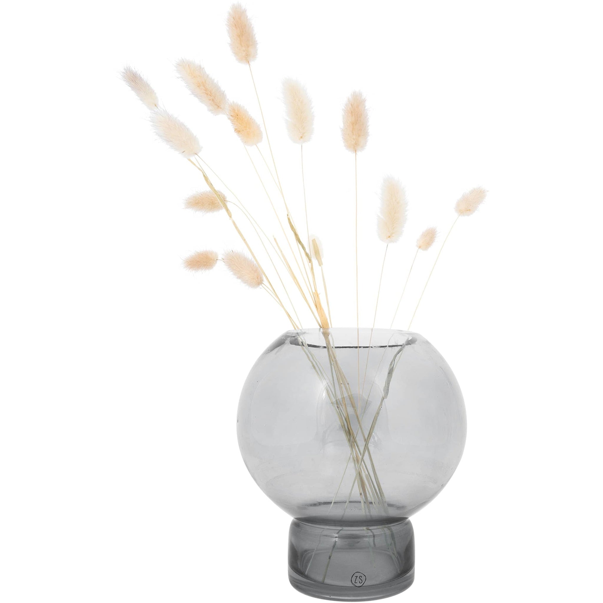 Deze leuke Zusss vaas maakt jouw woonkamer helemaal af! De vaas is bolvormig en staat bevestigd op een voet. Hij is gemaakt van sjiek glas met een grafietgrijze ondertoon. Basic maar uniek! Onderaan staat het Zusss logo afgebeeld. Vul de vaas met een mooi boeketje of wat losse bloemen en voila je kunt ‘m zo op tafel zetten!