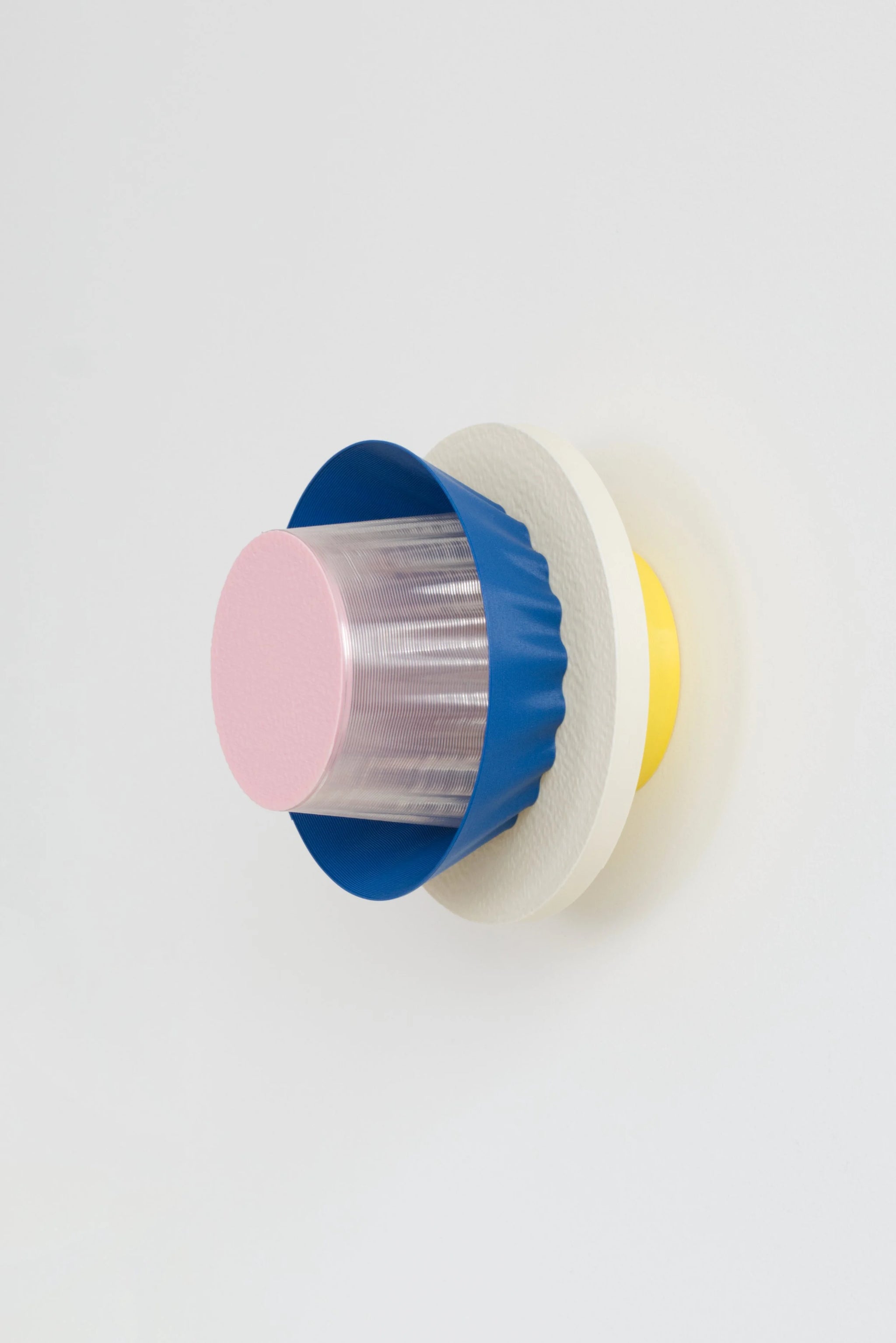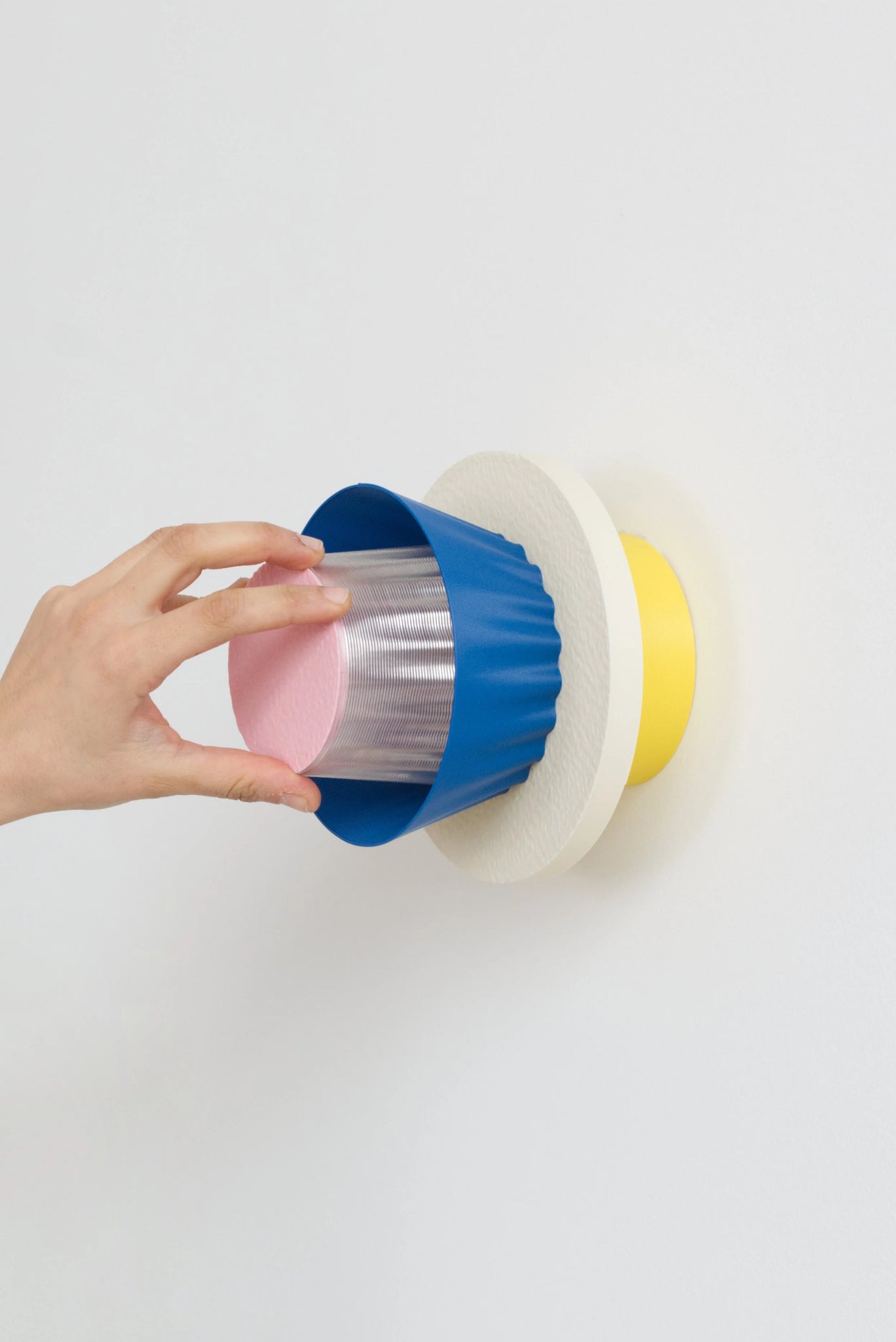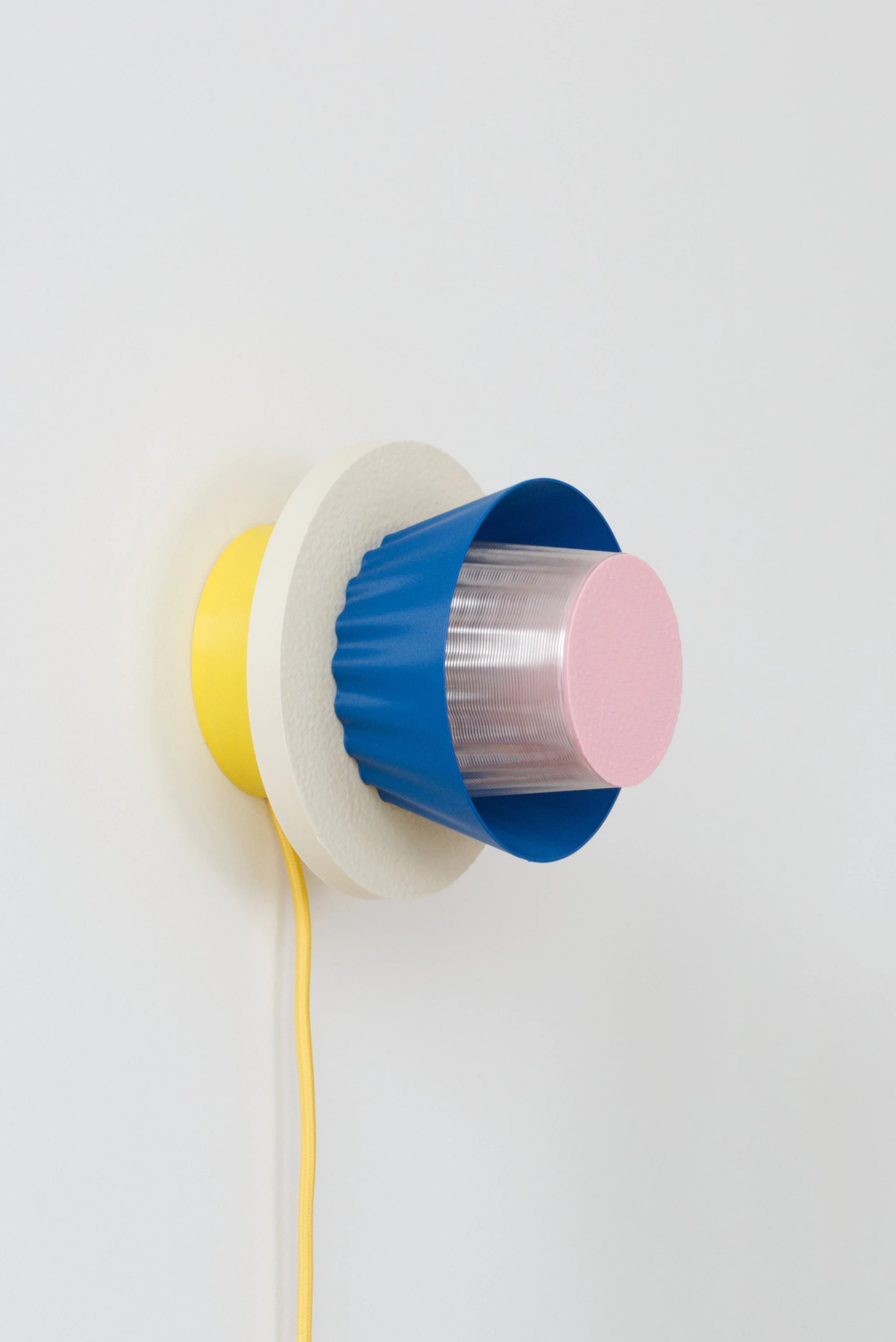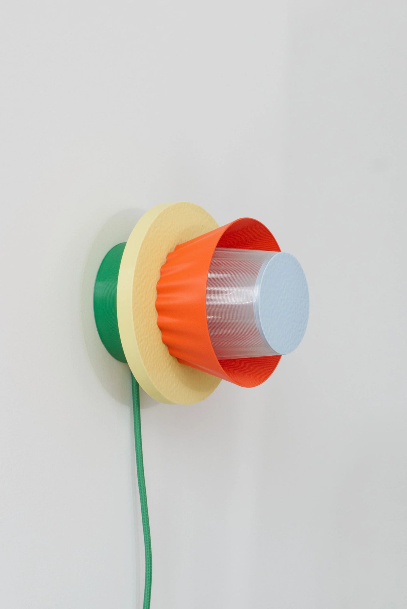 Deze wandlamp van Warren & Laetitia doet meer dan verlichten alleen. Ze heeft de unieke eigenschap om haar kleuren zachtjes te laten weerkaatsen op de muur waarop ze gemonteerd is, terwijl ze tegelijk de ruimte subtiel verlicht. Het resultaat is een warm spel van licht, kleur en schaduw dat meteen sfeer brengt — zonder te overheersen.