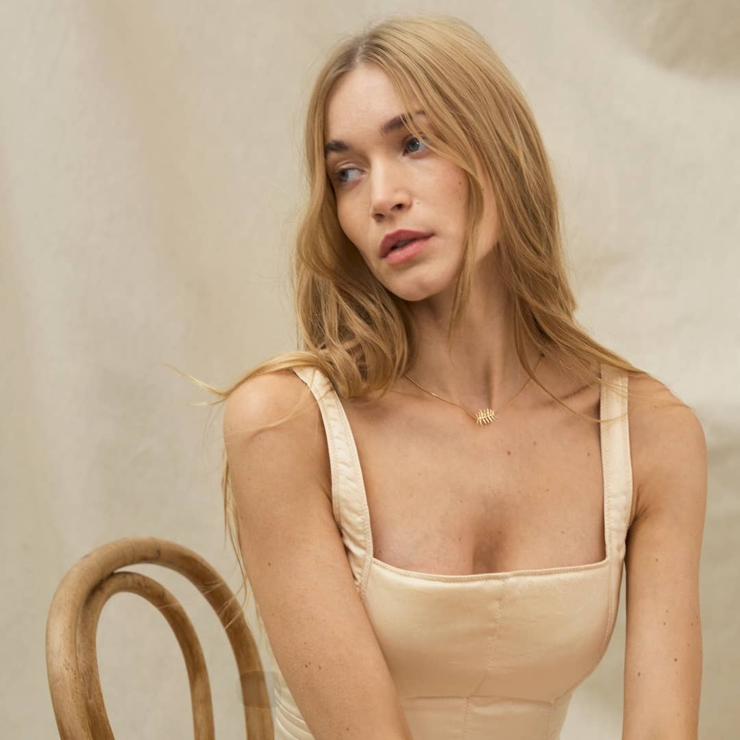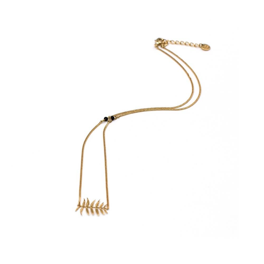 Subtiel en verfijnd tot in het kleinste detail: deze ketting van Nadja Carlotti bestaat uit fijne kettinkjes, delicate matzwarte kraaltjes en een sierlijk bladmotief dat geïnspireerd is op de elegante, fijn gesculpteerde blaadjes van de Sorbaria Sorbifolia. De ketting is uiterst licht, vrouwelijk en delicaat – bijna als een tweede huid.