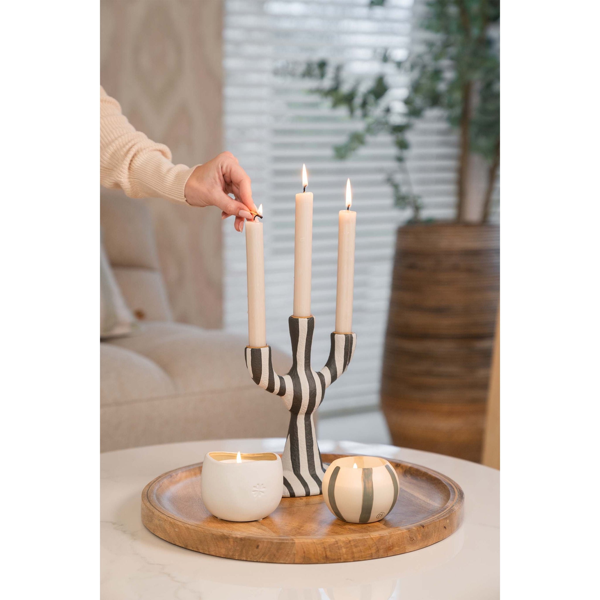 Maak het gezellig in huis met deze unieke kandelaar van Zusss met strepen gemaakt uit polystone. Voor een speels effect combineer je hem met verschillende vormen en hoogtes bij elkaar. Op tafel, op een kast of op je vensterbank - hij past overal en in ieders interieur.